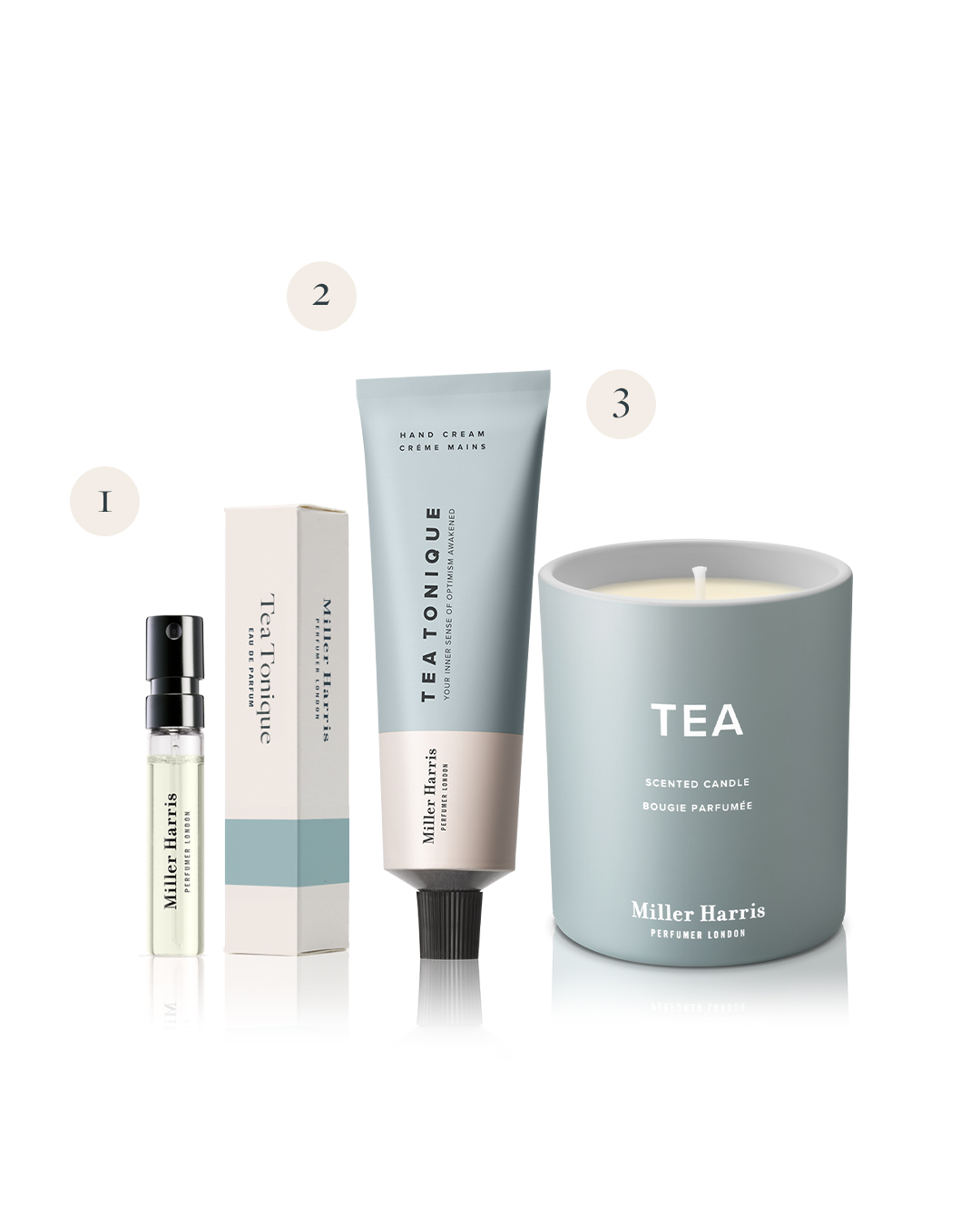 This limited-edition set features our bestselling Tea Tonique fragrance. Ideal for discovery, it includes a 2ml Tea Tonique eau de parfum, natural wax candle and a nourishing hand cream.